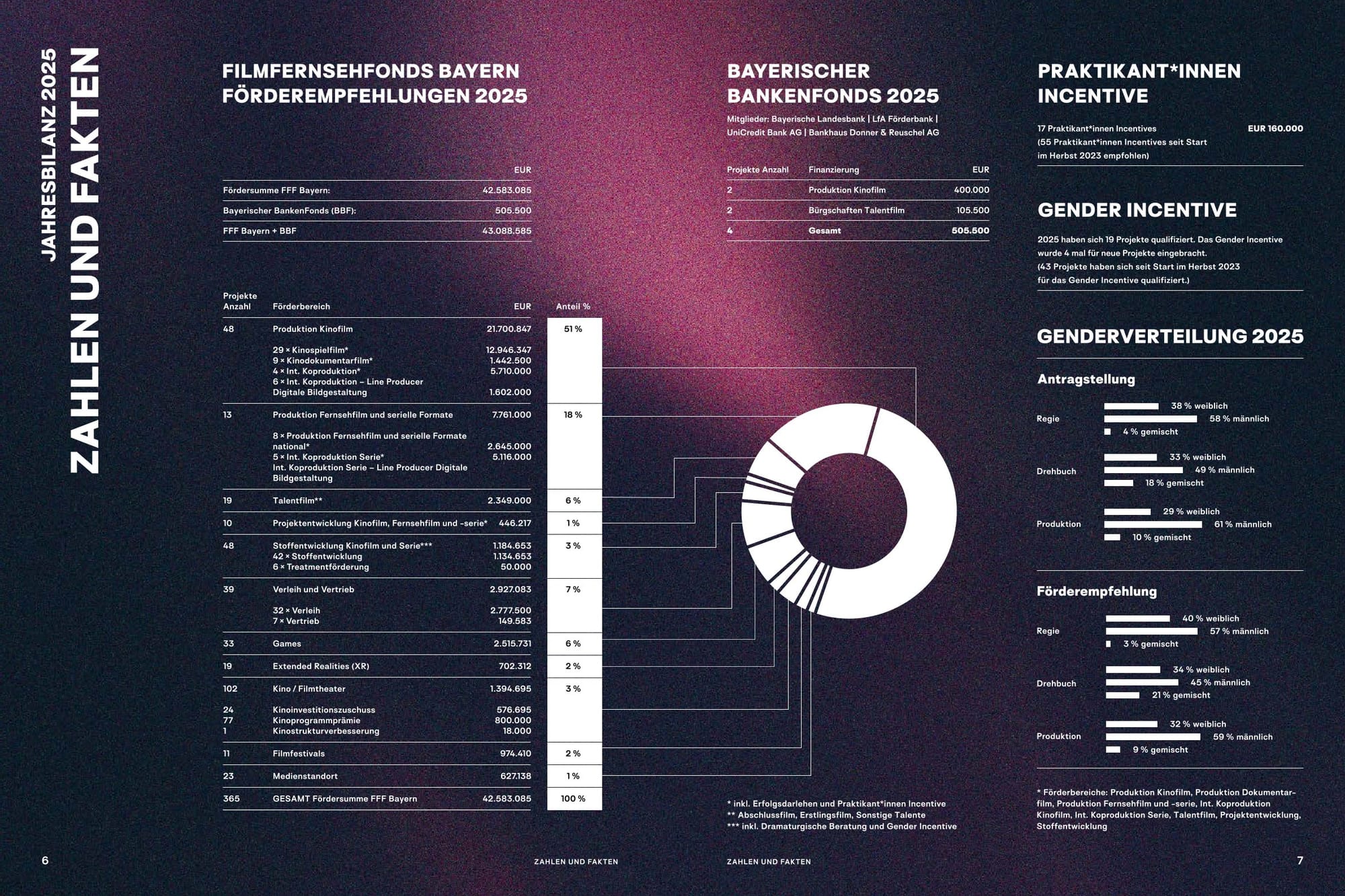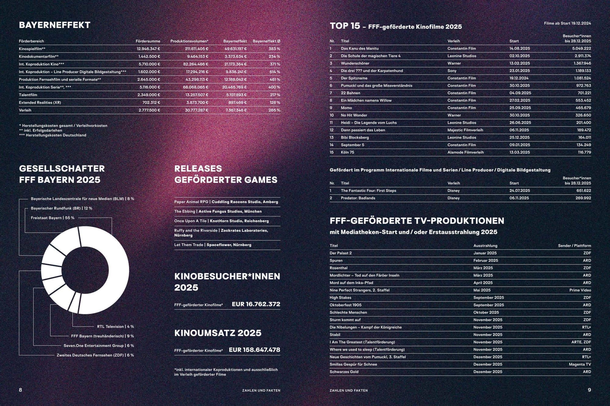 FFF Managing Director Dorothee Erpenstein said: “Last year once again demonstrated the reliability and strength of FFF Bayern. This continuity and the commitment of FFF Bayern and its committees are the basis for the successes on the big screen that we saw in 2025. Funded films performed brilliantly. It couldn't have been better!”