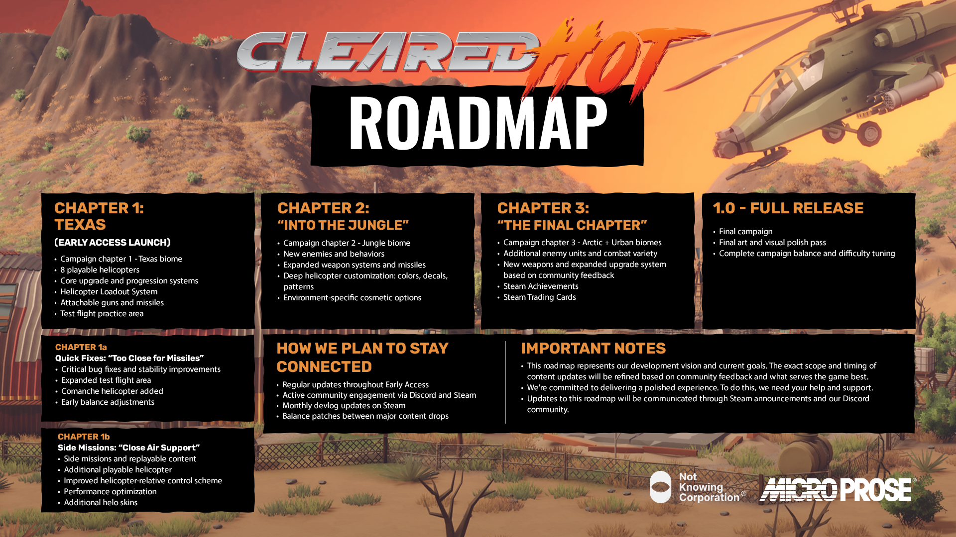 Why aren't there any more games like Desert Strike or Nuclear Strike? It seems that Not Knowing Corporation and MicroProse have asked themselves this question, too, because they've created Cleared Hot — a nostalgic helicopter shooter featuring physics-driven mayhem.