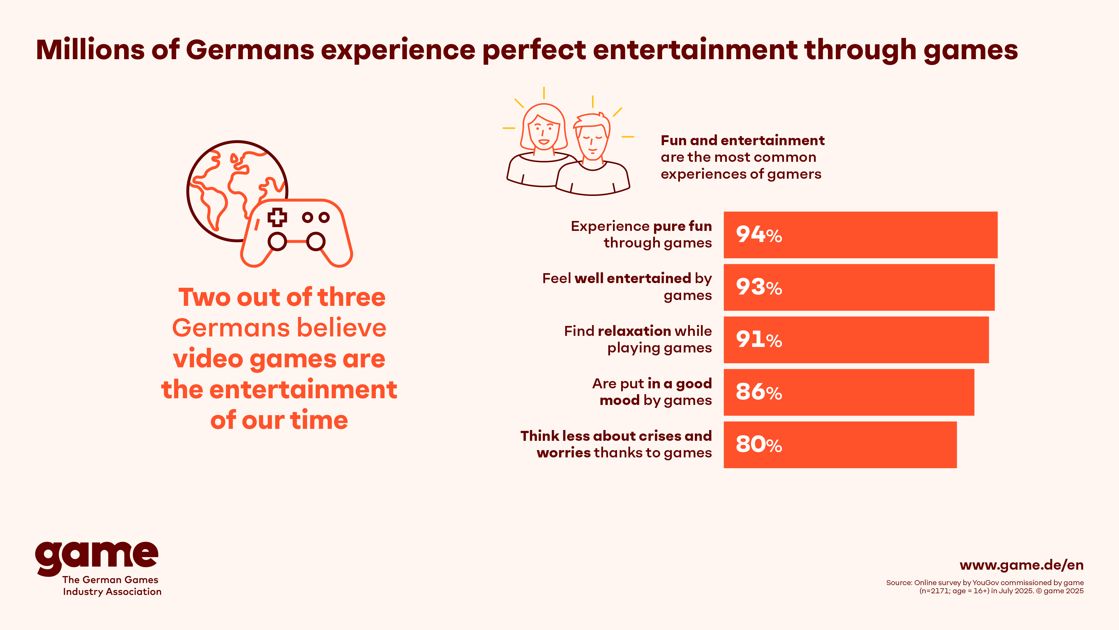 "The German games market's growth in the first six months of 2025 sends a powerful signal for the start of gamescom," says Felix Falk, Managing Director of game - The German Games Industry Association, which is a co-organiser of gamescom. "This year’s event has also set a new record for the number of exhibitors. Combined with the increase in exhibition space and the many top companies expected to attend this year's event, gamescom is set to drive even more growth in the German and international games market. This year’s theme - 'Games - perfect entertainment' - is fully in keeping with this boost, as 44 million Germans view games as the entertainment of our age. And not just for themselves: the vast majority of video game players believe that games are particularly good for bringing people of all ages together. It is yet another way that gamescom will be the perfect place to be."