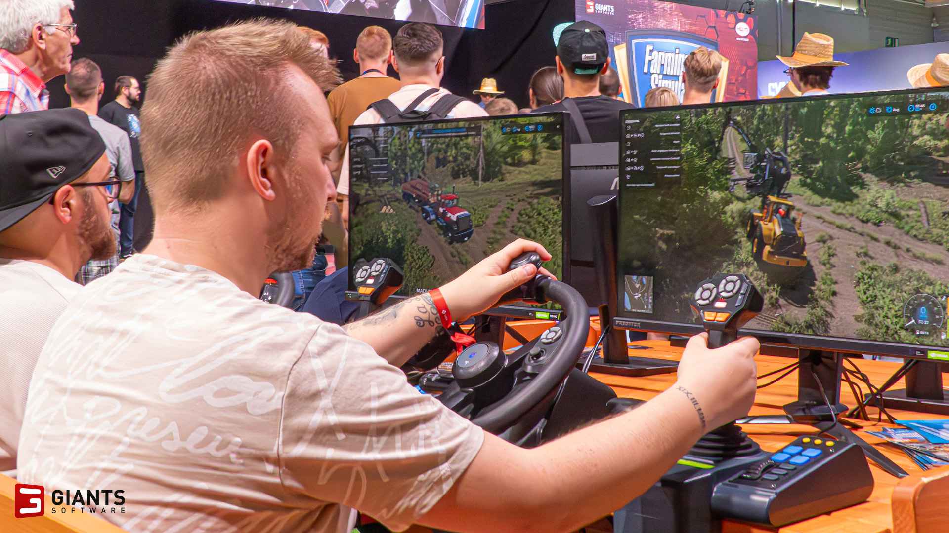 Die im November erscheinende Premium Edition für "Landwirtschafts-Simulator 22" war in Köln erstmals in der Öffentlichkeit spielbar. Ergänzt durch die mobile Version, "Landwirtschafts-Simulator 23", verfügte der Giants Software Stand über 30 Anspielstationen - ein Rekord für das Unternehmen. In Kooperation mit dem Zubehör-Spezialisten Hori konnten die Messebesucher:innen bislang unveröffentlichte und speziell zur Verwendung mit Landwirtschafts-Simulator konzipierte Hardware ausprobieren. Zugleich wurden in Zusammenarbeit mit John Deere auch Preise im Einzel-Wettbewerb beim Ballenstapeln verlost.