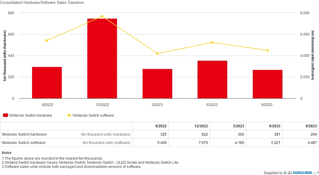 Im laufenden Geschäftsjahr möchte Nintendo rund 15 Millionen Switch-Konsolen verkaufen. Der Prognose nach müssen von Oktober 2023 bis März 2024 noch 8,16 Millionen Konsolen abgesetzt werden. Nintendo möchte die Attraktivität der Switch weiter steigern und auch mehrere Geräte pro Haushalt, idealerweise pro Person, absetzen. Auch Paketangebote und Rabattaktionen sind geplant. Die bereits veröffentlichten Titel "Super Mario Bros. Wonder", "Meisterdetektiv Pikachu kehrt zurück" und "WarioWare: Move It!" sowie kommende Games wie "Super Mario RPG" sowie Zusatzinhalte für "Pokémon Karmesin und Purpur" sollen die Verkaufszahlen ebenfalls anfeuern. "Auch andere Software-Publisher planen die Veröffentlichung einer Vielzahl von Titeln, und wir werden daran arbeiten, die Plattform zu beleben, indem wir die bestehenden Titel durch einen kontinuierlichen Strom neuer Titel und Zusatzinhalte ergänzen", so Nintendo.
