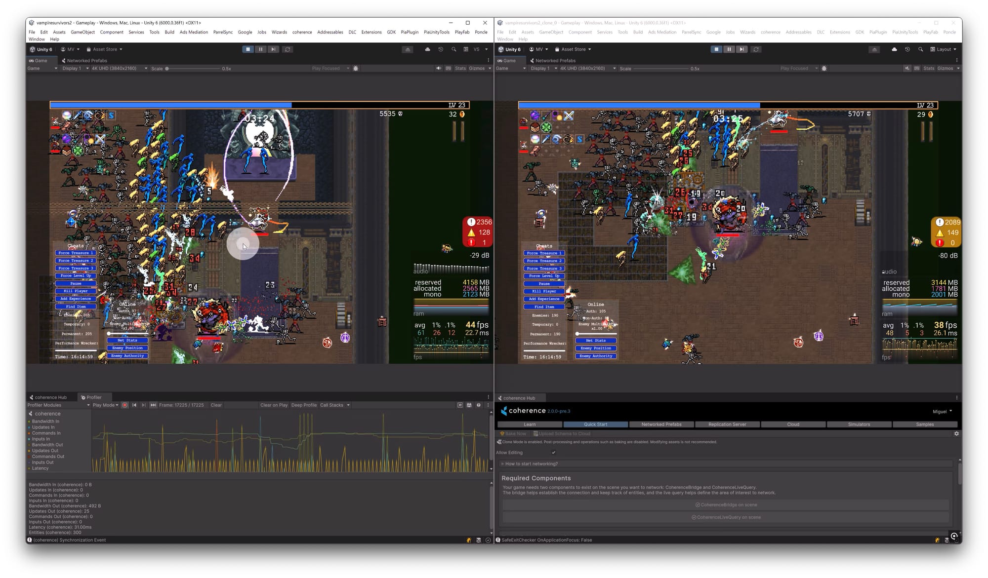 The idea for coherence emerged from conversations that the company's founder and CEO, Dino Patti, had with other veteran developers at games industry events. Coherence is a comprehensive toolkit designed to enable multiplayer functionality in Unity projects. "Our Multiplayer-as-a-Service platform empowers game developers to create, test, and scale multiplayer through our Unity SDK, Network Engine, and flexible hosting. coherence also offers full co-development services, providing multiplayer production from prototype to live launch and beyond," the company states. The online multiplayer mode of Vampire Survivors (Unity engine) was realised with coherence.