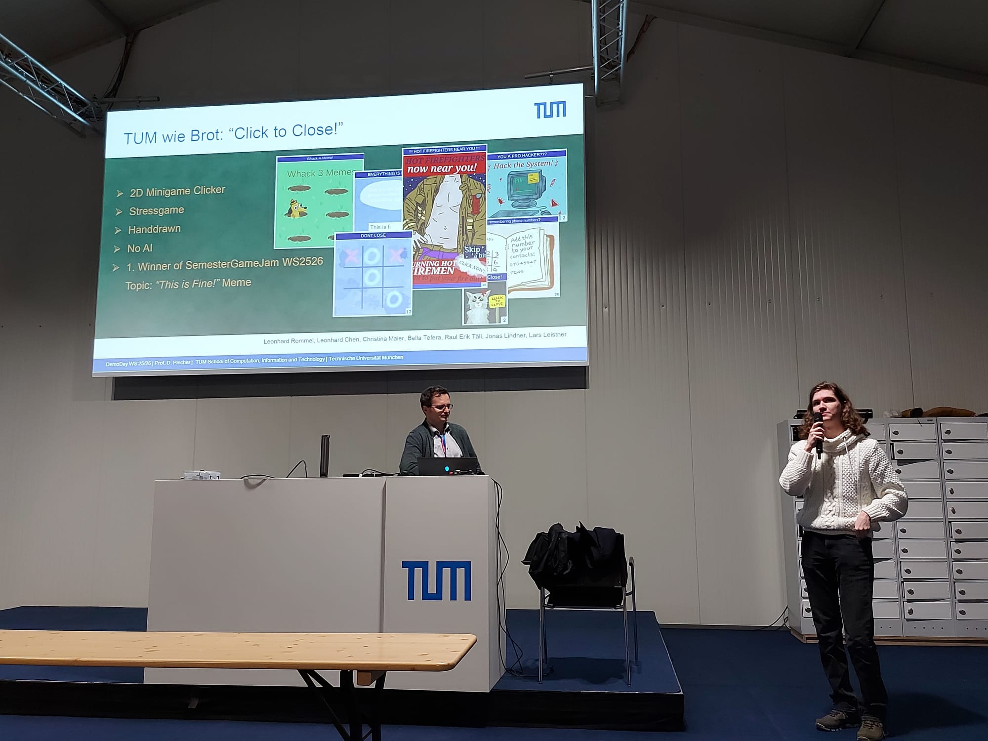 Yesterday at the Technical University Munich (TUM), the 27th DemoDay of the Computer Science Department has taken place. Every semester, the students of the department are presenting their games projects and game jam prototypes as well as AI and XR research from the last semester there in “One Minute Madness” rounds, pitching the game to an audience of fellow students, professors and industry professionals from the region like Irox Games, streamer and journalist Maurice Weber and GamesMarket.