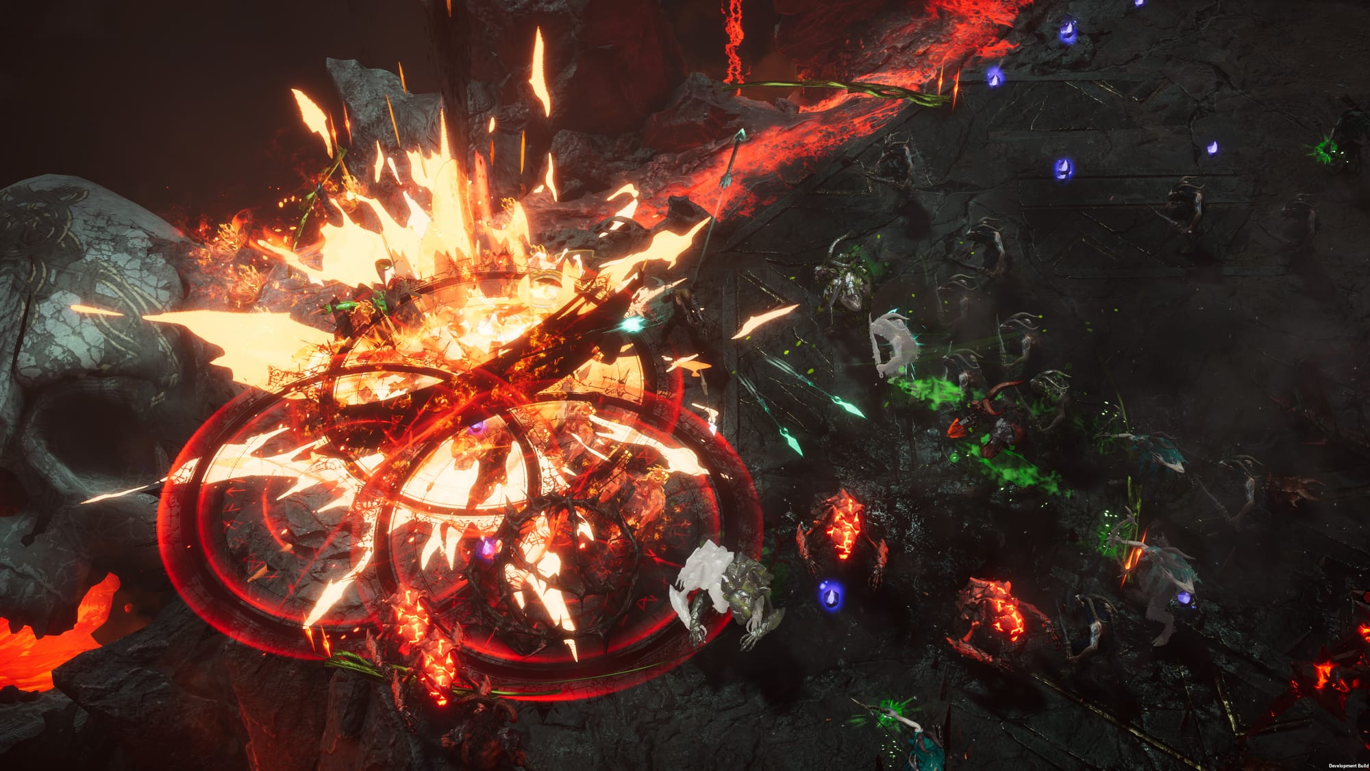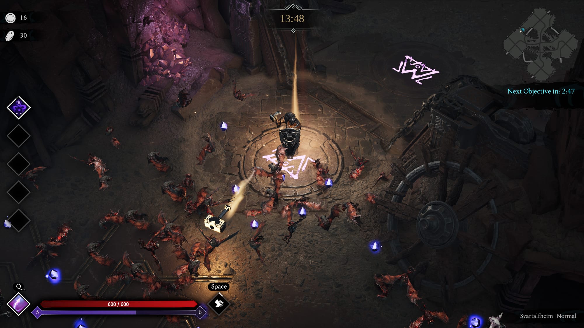 But beyond the graphics, Jotunnslayer: Hordes of Hel has some notable strengths, particularly in terms of build variety and skills. The seven classes (with more subclasses) offer distinctly different play styles that can be enhanced through a skill tree after each run. The same applies to the gods, who differ greatly and provide players with new abilities during runs. For example, Thor gives players lightning abilities, Loki offers poison abilities, and Nerthus unleashes earthquakes, floods, living forests, and summoned beasts. There are also different weapons (each with one active ability), allowing for enormous build diversity and rewarding experimentation. In addition, there are variable difficulty levels and optional modifiers that can be used to make runs easier or harder. The runs are fast and there is a lot to unlock, but this also involves grinding. Additionally, there are mini-tasks throughout the six main levels, as well as boss fights which are quite extensive for the genre — in particular, many of the enemies' skills are easy to read.