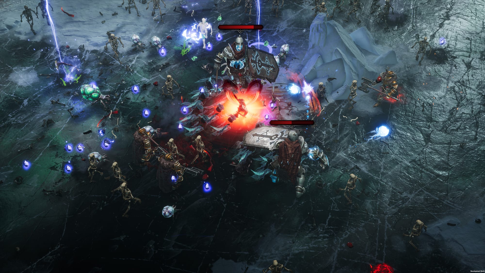 Jotunnslayer: Hordes of Hel is a roguelite survival game in the style of Vampire Survivors, Halls of Torment and Deep Rock Galactic Survivor, where players must survive hordes of enemies. In this single-player game, the player controls a character on a battlefield while numerous enemies rush towards them in large numbers. During these short runs, which usually last a couple of minutes, players can level up, acquire new abilities and grow stronger. Most of these abilities are used automatically, depending on when the cooldown ends. As the name suggests, the game is based on Norse mythology, featuring its gods and creatures. For this genre, the game features surprisingly elaborate and high-quality graphics.