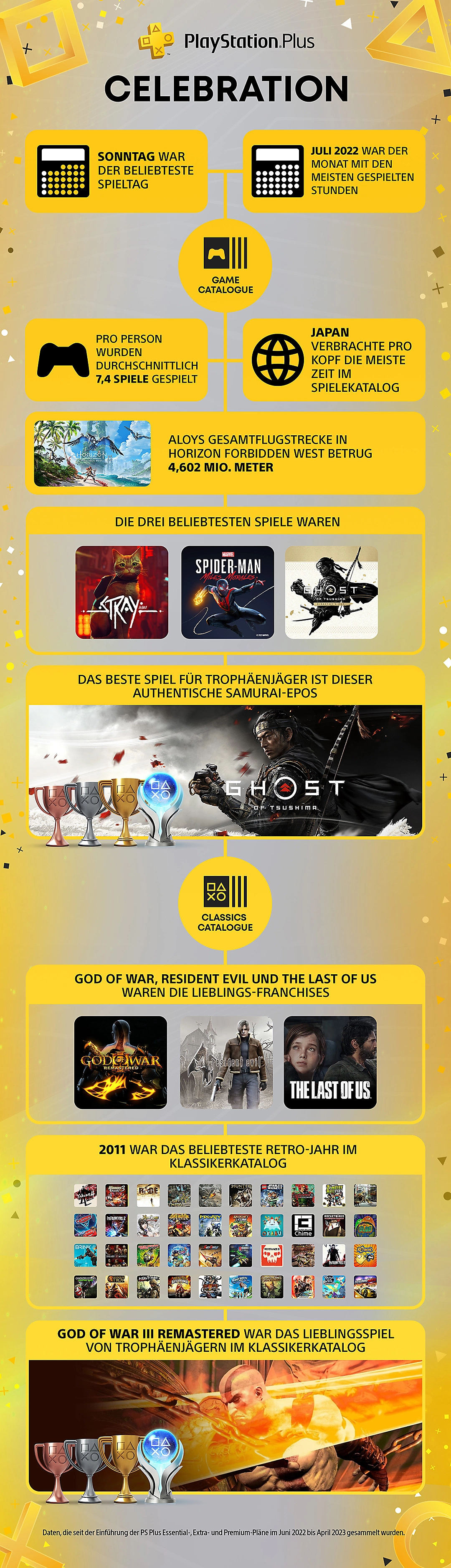 Zum einjährigen Bestehen des neuen PlayStation-Plus-Services veranstaltet Sony Interactive Entertainment nicht nur Gewinnspiele und andere Aktionen für Spieler:innen, sondern veröffentlicht auch einige interessante Daten zum Nutzungsverhalten des Dienstes.
