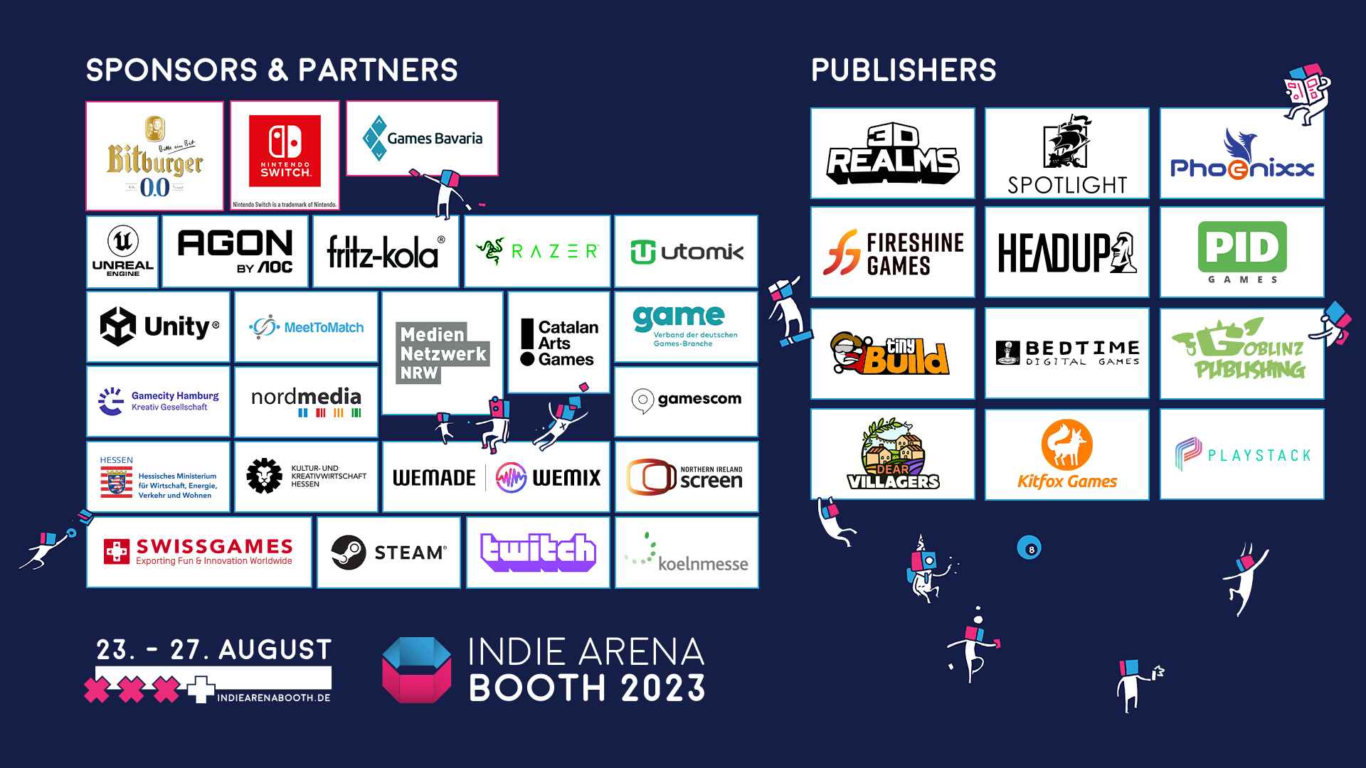 Line-up der Indie Arena Booth auf der gamescom 2023