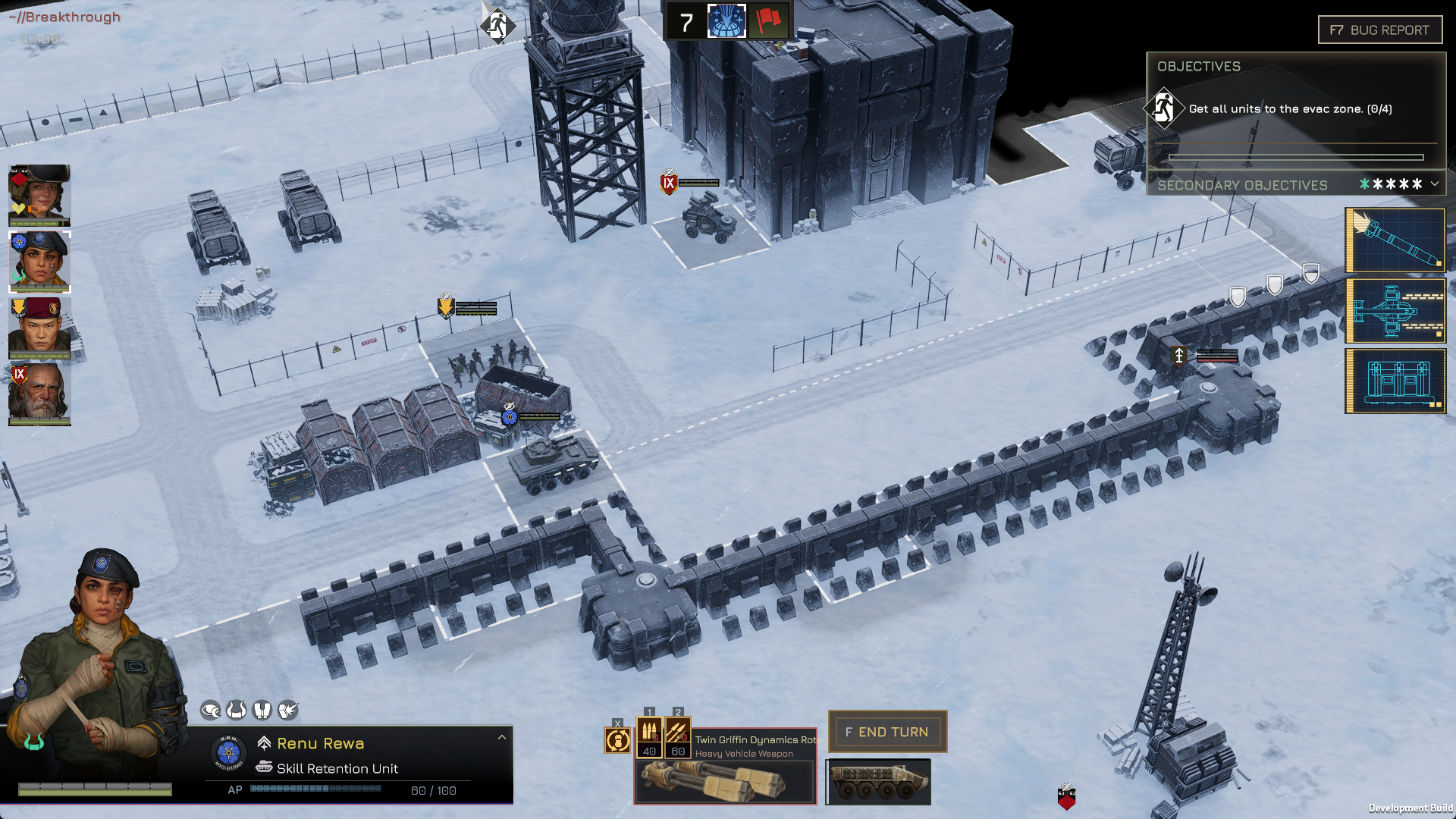 At the end of a mission or operation, rewards and promotions are given to improve the troops and spaceship for the next operation. However, it is also important to give squad leaders a break because they become 'weaker' after several missions. Therefore, it is not enough to simply level up a few people; it is also important to have replacements. This continues operation after operation until the threat posed by cybernetic constructs spreads further and brings new challenges with its rigorous approach to combat.