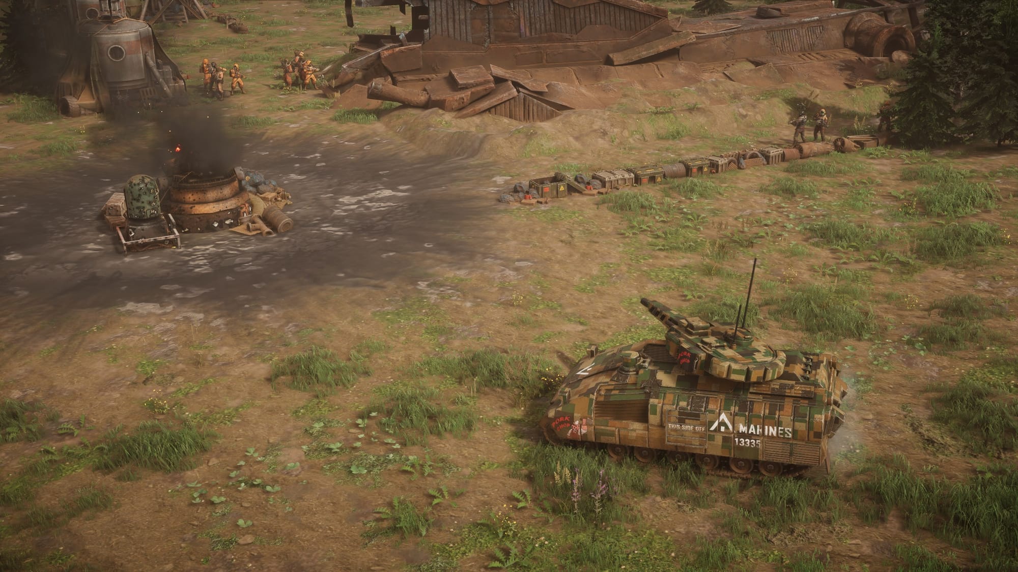 There are also different types of ammunition and armour to consider, and vehicles have their own unique characteristics and strengths. For example, parts of vehicles can be destroyed, although they are not specifically targetable. Not to mention that not all tactics work for all factions. Suppressive fire, for instance, is pretty much useless against melee-attacking bug-like aliens, especially since they usually have thick body armour. In addition, the battles are also influenced by weather effects.