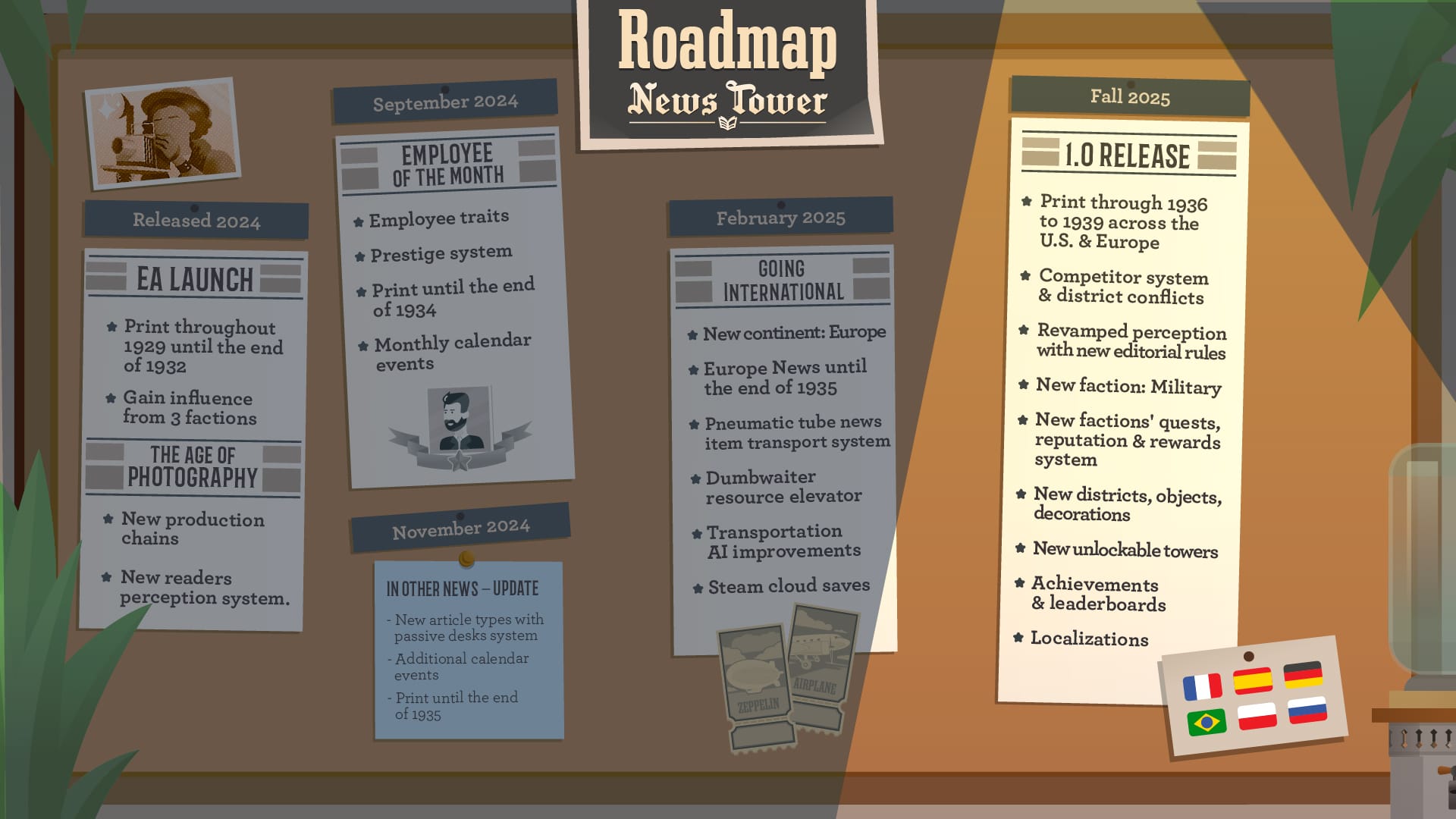News Tower left Early Access on 18 November 2025. It is available on Steam for €24.99 for both PC and macOS.