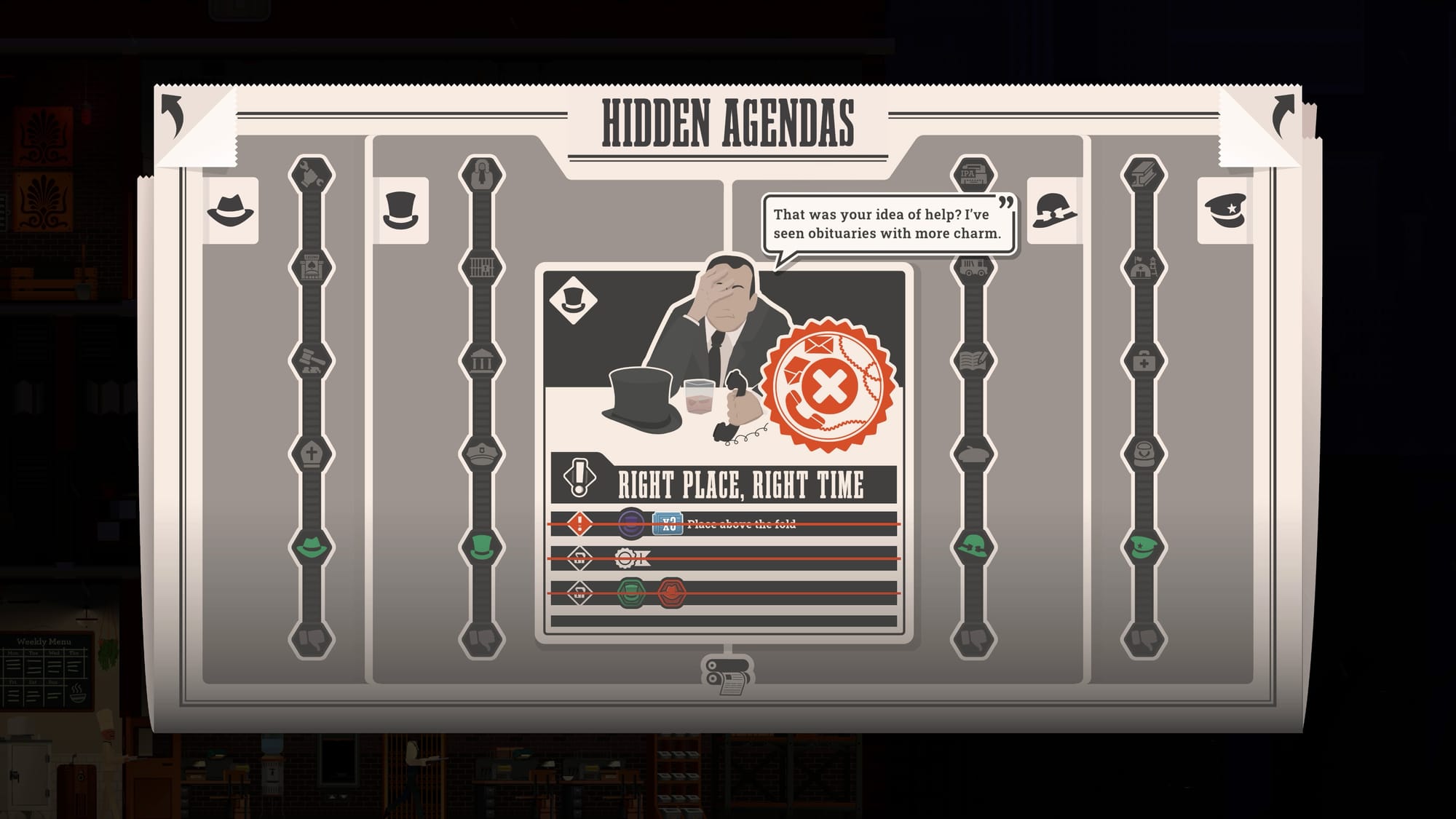 Then there's the staff to consider: editors, reporters, copywriters, advertising salespeople, cleaners and lawyers. There are more than 30 unique job roles in total, each with their own traits, needs and areas of expertise. It is also important to consider employee well-being, production efficiency and meeting weekly publishing deadlines (Sunday is publication day). Over the years, more and more upgrades are unlocked, influencing production and making it more efficient.