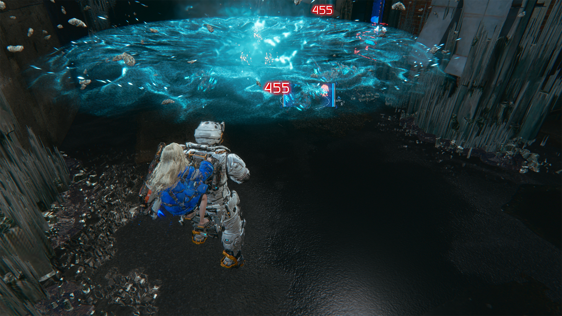 Blending action with another gameplay element — hacking, in this case — gives the game a nostalgic feel reminiscent of the PS3/360 era; think Vanquish, but with modern technology and AAA-level production values. This combat system adds an extra dimension of multitasking and works exceptionally well. It offers a surprisingly substantial amount of depth in terms of mods, weapons, enemies and bosses, and motivates players to enhance the unlikely duo's effectiveness with various upgrades. Furthermore, hit feedback, aiming and shooting are excellent, as is the overall feel of the gameplay. However, the space scenario could have been fleshed out more in places. There is scope to make the world more interesting, or even more threatening.