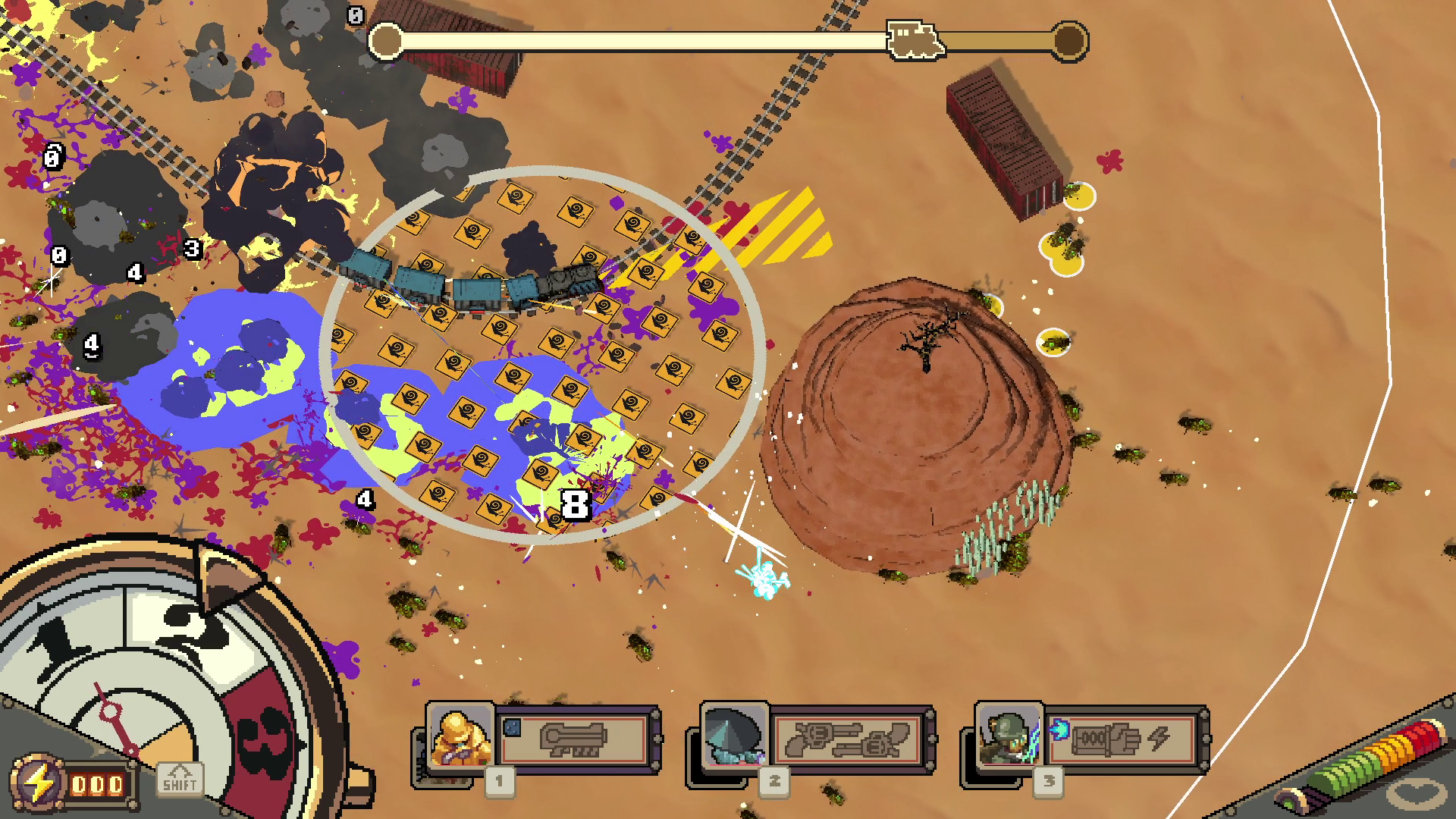 In the game, players take on the role of hired mercenaries defending a cargo train as it navigates a monster-infested, drained seabed. The mission is to escort the cargo across this hostile terrain while fending off endless waves of enemies at every station. If the shipment arrives intact, it's a win! Before the train departs, players must deploy and strategise their limited units in order to hold off waves of enemies in turn-based combat with unit merging (1,500+ combinations across 30+ unit types), where experimentation is key. Then, players can unleash overload and become the Bullet Hell in real-time battles with additional direct control options. After each successful station, players can choose from reward cards that grant substantial perks and boosts. This allows players to craft unique builds by mixing cards with their evolving crew to create new strategies.