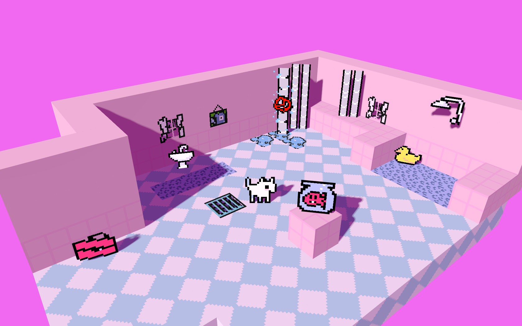 Doggoworld is just that, intentionally modelled after the release schedule and consumption method of webcomics. “Each installment is intentionally brief—designed to be played in the time it takes to wait for a bus—without resorting to the manipulative dark patterns common in many free-to-play games,” explains Vehrs. The graphic style is both intentionally retro, reminiscent of MS Paint and Flash games but in 3D, and also a nod to riprip’s engine history and indie game obsessions. Originally intended to be made in the small engine Bitsy, riprip did not like to work with its limitations, and set out to make their own game engine. “Something less complex and more playful than Godot, but also more feature-rich and extensible than Bitsy. The 3D aspect just came into it because Spiders and Hannes both played too much magicwand (a blocky exploration game made by indie avantgarde artist thecatamites, editor’s note).” Product of this effort is wareware, the engine doggoworld has been made in, and itself a project that riprip is giving back to the dev community. “Having been part of the Bitsy community, we also felt that a lot of people would be into this.” The engine, specifically made to easily produce small 3D games, has its own release page on Steam now, and riprip offers it free of charge to everyone, with the intent of having making games be as easy as possible, almost like a toy. “Our intention was actually to evoke a ‘toy-like’ feel—something approachable and playful. Still, all four of us move fluidly between applied and contemporary fine arts, which probably lends our visual identity a certain depth—or abyss—that others might not have (though it’s admittedly harder to market)”, Vehrs laughs. Marketability was not the main aspect of the game or engine after all, since all four founders are deeply rooted in the arts. “It’s important to each of us to keep exploring other creative paths beyond riprip: Spiders curates a sound festival, Robin draws comics, Chris is writing a novel, and Hannes paints.”