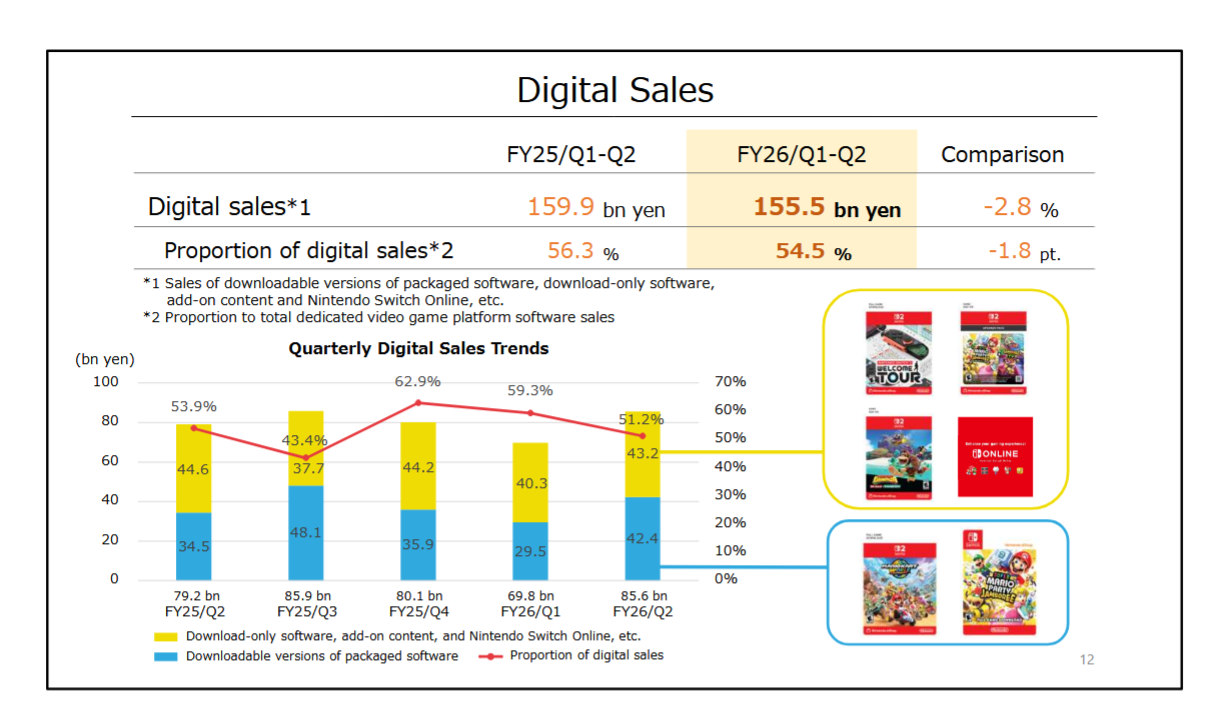 Digital sales in the first half of the 2025 fiscal year; Nintendo