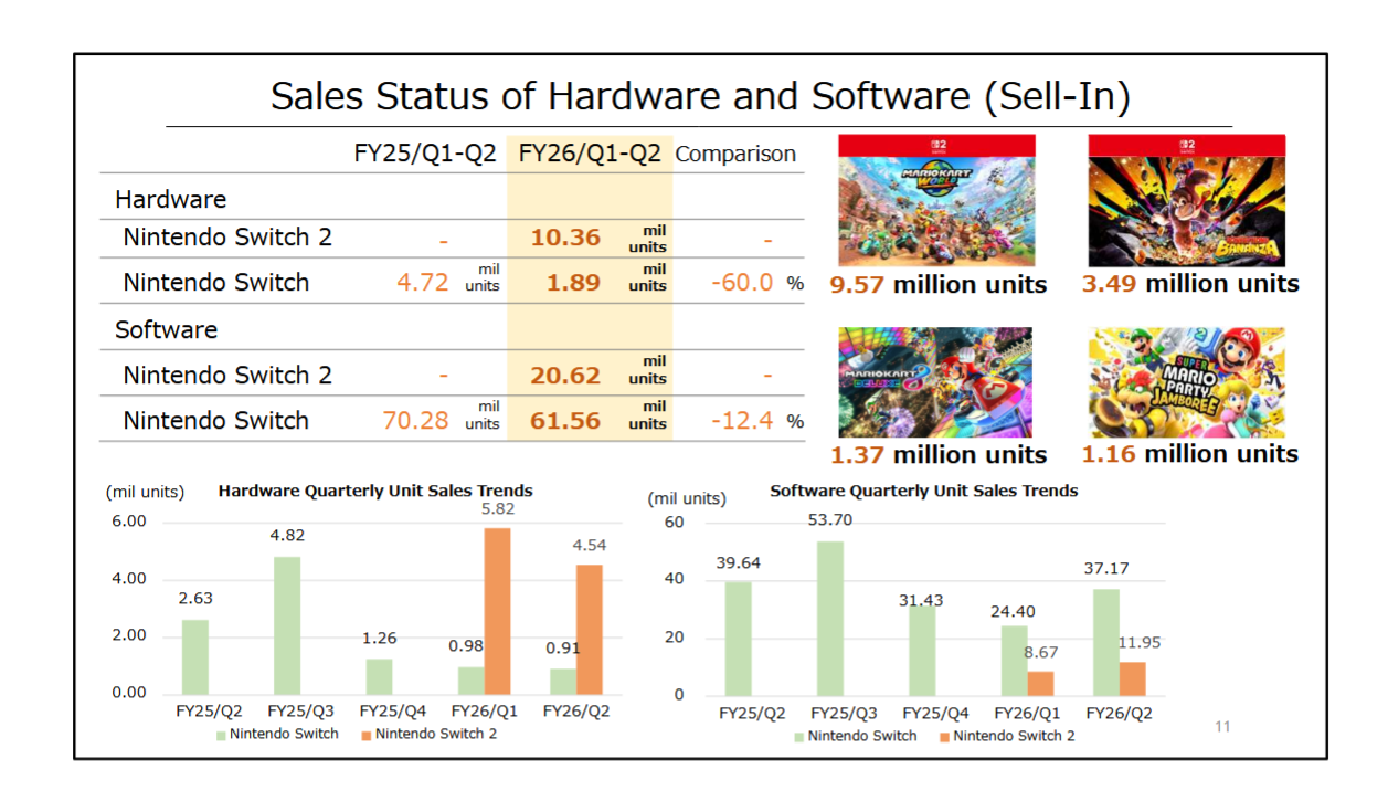 Sales status of hardware and software in the first half of the 2025 fiscal year; Nintendo